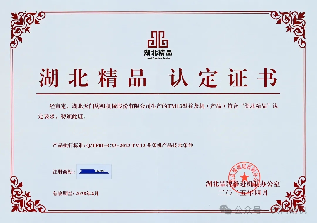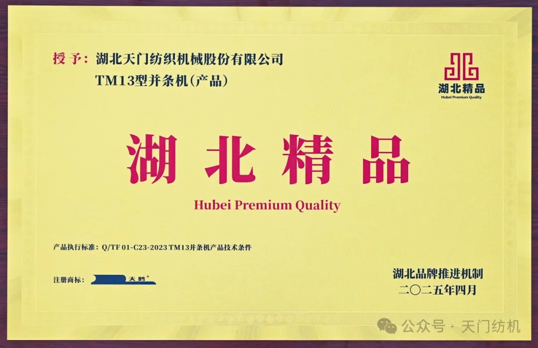 “湖北精品”作為湖北省卓越質(zhì)量品牌的杰出代表,已成為湖北品質(zhì)的圖騰。天門紡機產(chǎn)品入列“湖北精品”,就是對其匠心與創(chuàng)新精神的高度認可。