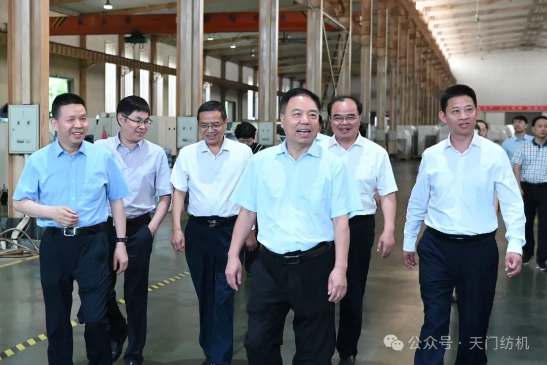 2025年5月22日下午,湖北省人大常委會副主任楊云彥,省人大常委會委員、民宗僑外委主任委員陳亮,省人大常委會副秘書長陳少敏,省人大民宗僑外委專職副主任委員劉玉坤,省人大民宗僑外委辦公室主任彭細元,省人大民宗僑外委辦公室副主任馮吉等一行,深入天門紡機開展專題調研。天門市委書記、市人大常委會主任紀道清,市人大常委會黨組副書記、副主任蔣勝雄,市人大常委會黨組成員、副主任張文輝,市人大常委會黨組成員、秘書長龔賢俊,市人大常委會教僑工委主任陳新華、侯口街道辦事處黨工委書記劉娟等領導陪同調研。天門紡機董事長沈方勇全程接待,匯報工作。