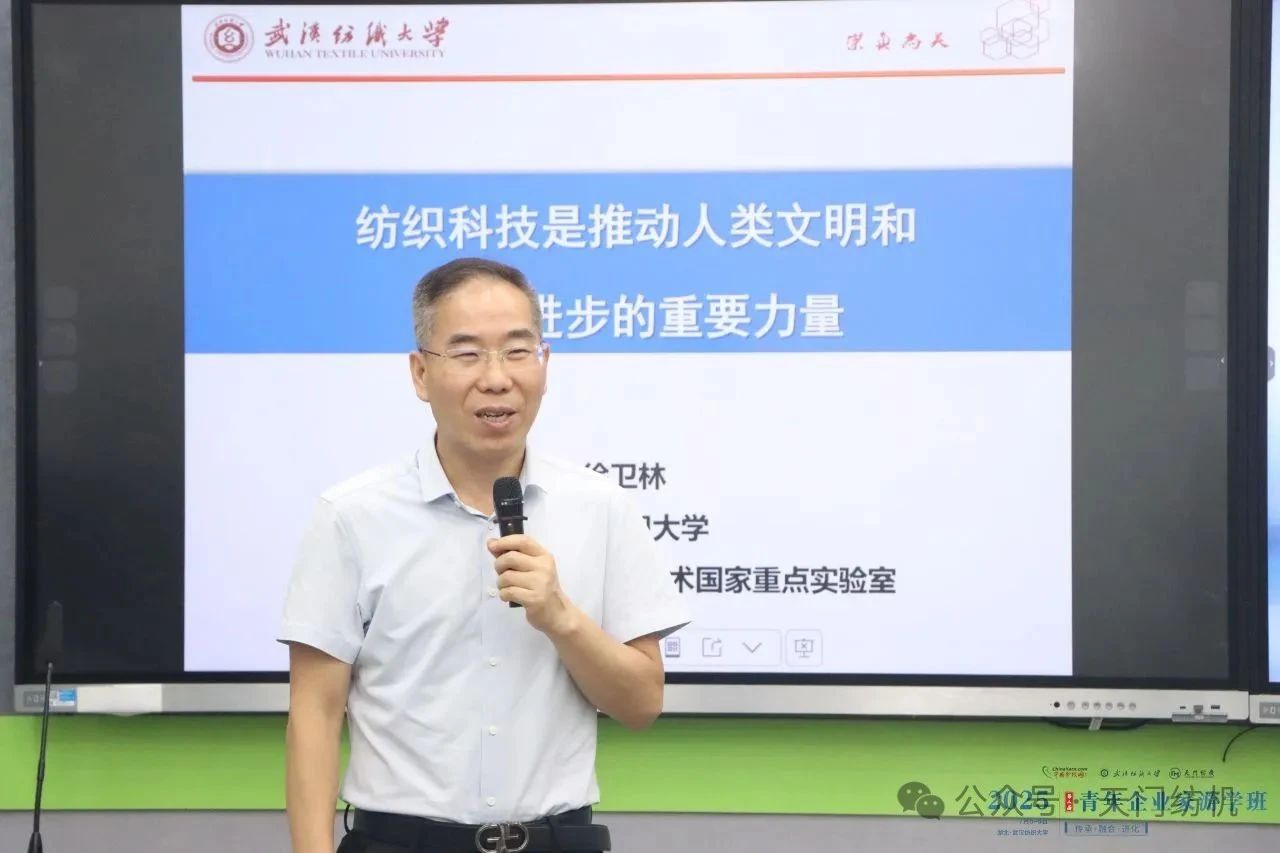 第一課由中國工程院院士、武漢紡織大學黨委書記徐衛(wèi)林主講,主題為《紡織科技是推動人類文明和社會進步的力量》。他從紡織起源開始娓娓道來,貫通文化、品牌與時尚,深入剖析紡織科技的發(fā)展脈絡與未來趨勢,為學員們帶來前瞻視野。