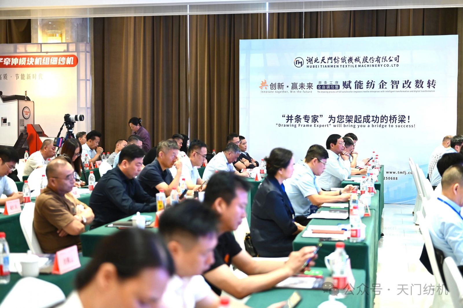 本次會議由天門紡機冠名,中國紗線網與新疆維吾爾自治區紡織工程學會共同主辦,全國政協委員、新疆維吾爾自治區棉花產業發展領導小組辦公室主任梁勇,新疆生產建設兵團第三師圖木舒克市黨委常委、副師長丁偉,天門紡機董事長沈方勇,中國紗線網總編王果剛等400余位領導、專家及代表參加會議,同步開啟的在線直播超過1萬人收看。